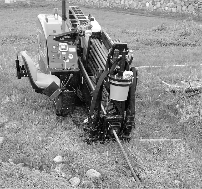 Horizontalus kryptinis gręžimas. Klojame uždaru - betranšėju būdu vandentiekio, nuotekų, dujų , elektros kabelių apsaugos vamzdžius nenaudojant atviro kasimo (po keliais, upėmis, pastatais, medžiais, kiemais ir kt). Tai geriausias pasirinkimas, nereikalaujantis papildomų išlaidų iškasinėto paviršiaus ar dangos atstatymui, o darbai atliekami greitai ir tiksliai. Vienu pragręžimu iki 60m ilgio atkarpa ir iki 110mm diametro vamzdžio skersmuo.